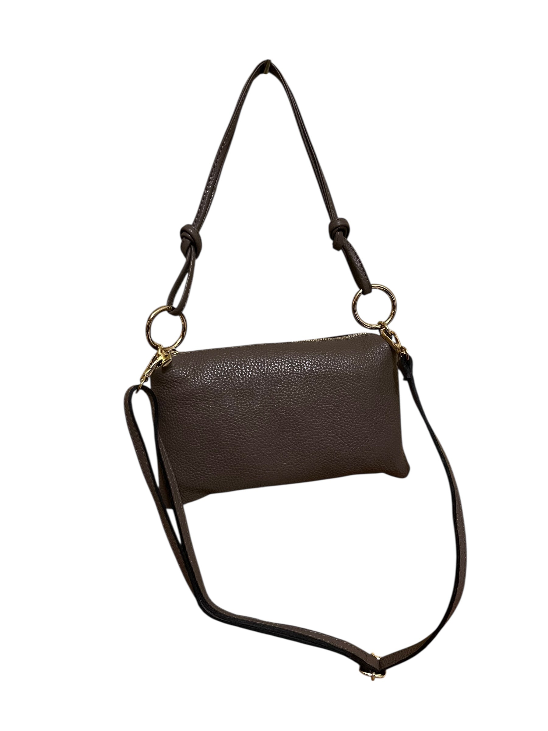 La Poshette Giulia è una borsa in Vera Pelle Vitello Dollaro, dalle linee eleganti e compatte. Realizzata con cura, presenta una chiusura con cerniera per una maggiore sicurezza e un interno foderato che protegge gli oggetti personali. Dotata di manico ampio annodato, per una comoda presa a mano e a spalla, e di una tracolla regolabile, ideale per essere indossata anche a bandoliera. Perfetta per completare look sia casual che raffinati.