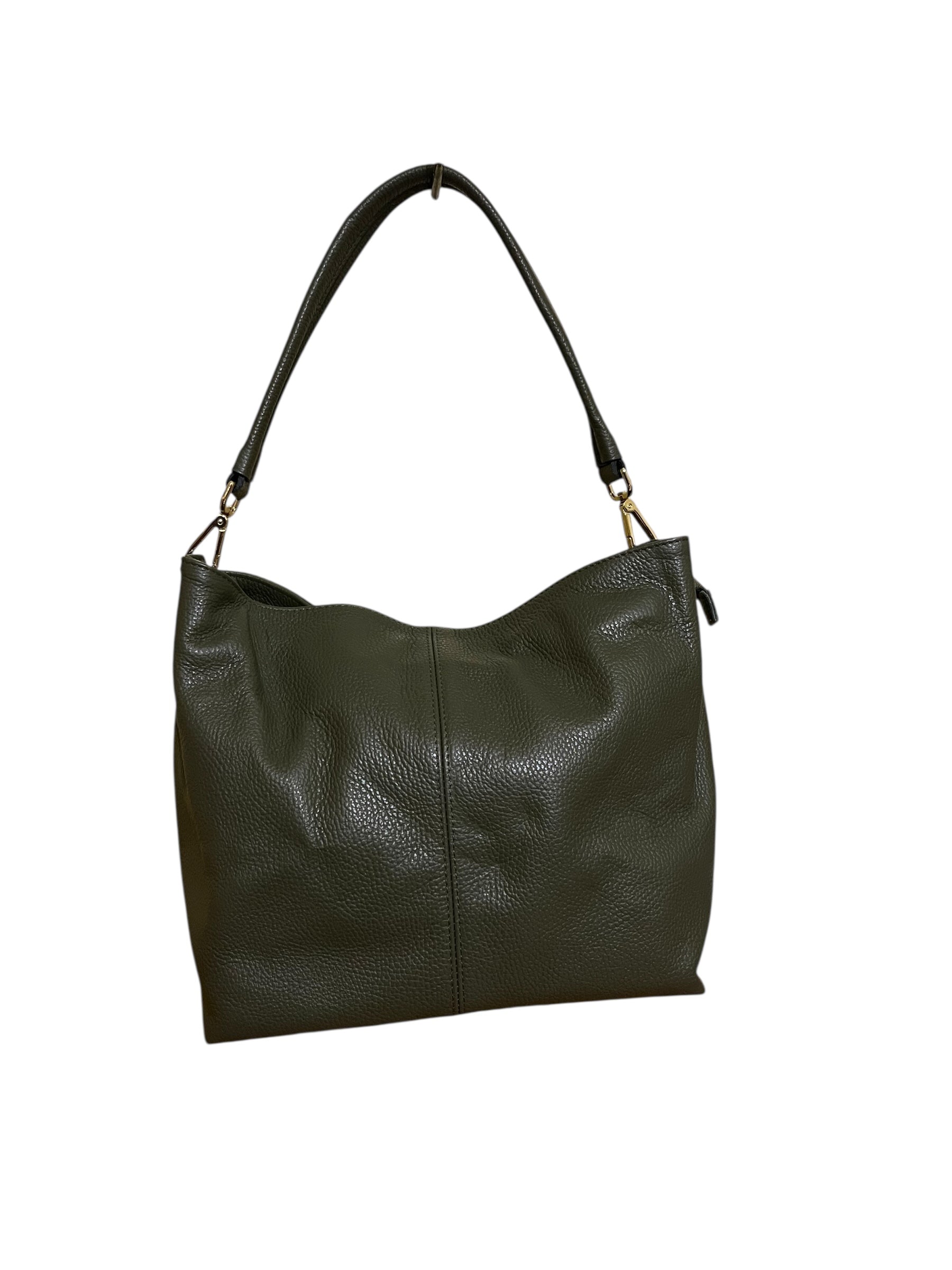 Giusy è una borsa di Campionario di medie dimensioni, in Vera Pelle di Vitello Dollaro, dalla forma classica e comoda nell’utilizzo quotidiano. Il manico è singolo e ampio da essere portata a spalla, l’interno è foderato con l’aggiunta di un divisore centrale e la chiusura è con cerniera.