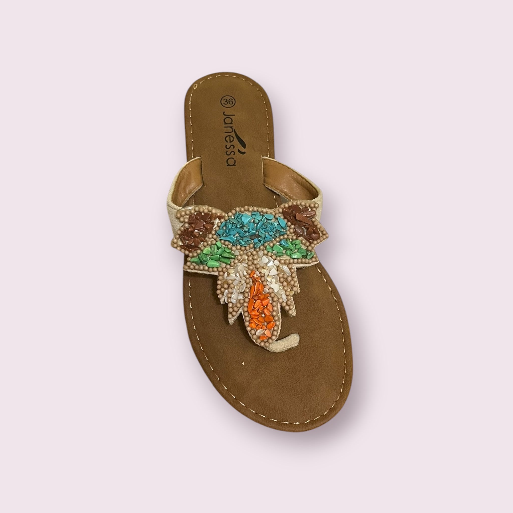 Sandalo Infradito in Ecopelle, decorato con Perline.