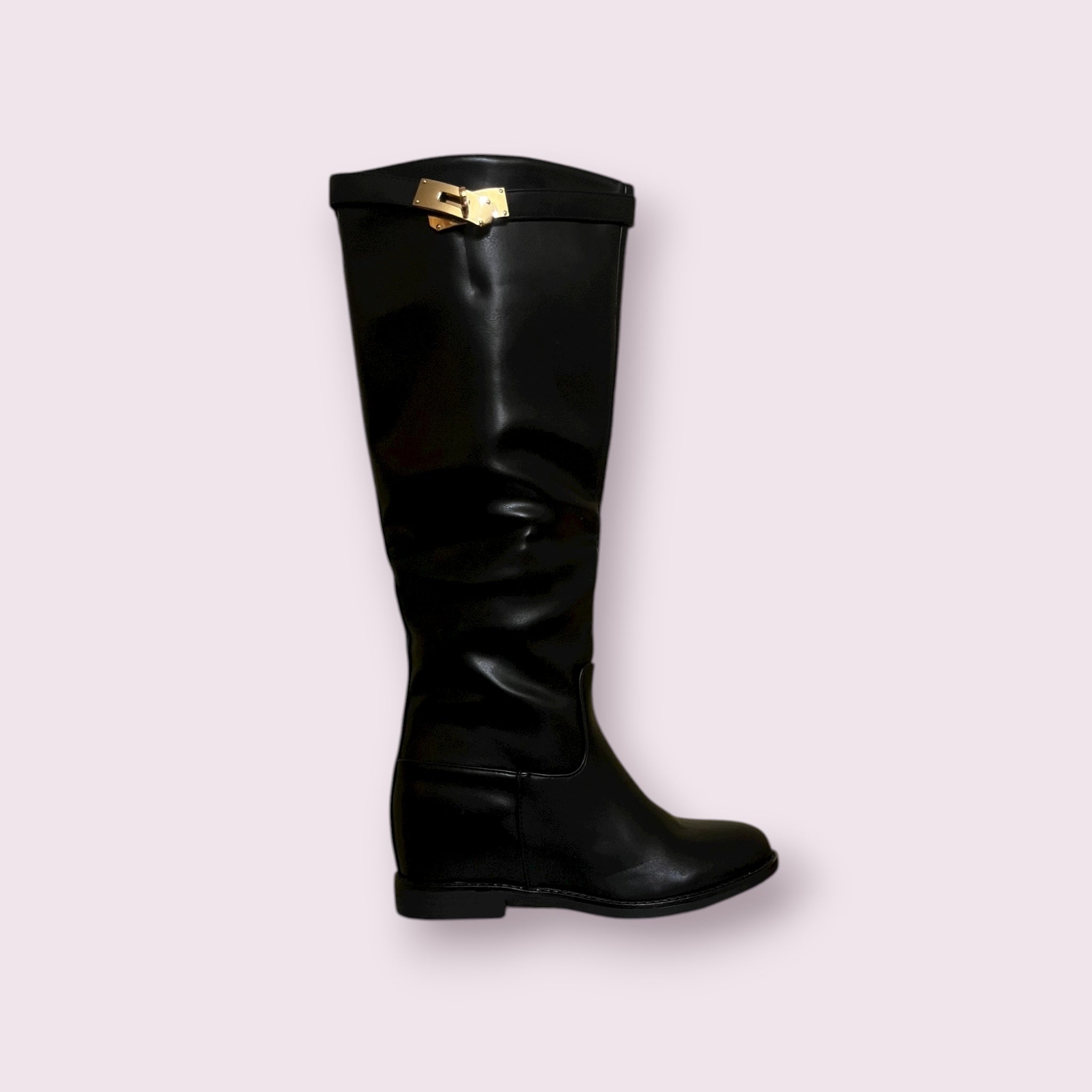 Stivale in Ecopelle Al Ginocchio Classico, con Chiusura Metallica.